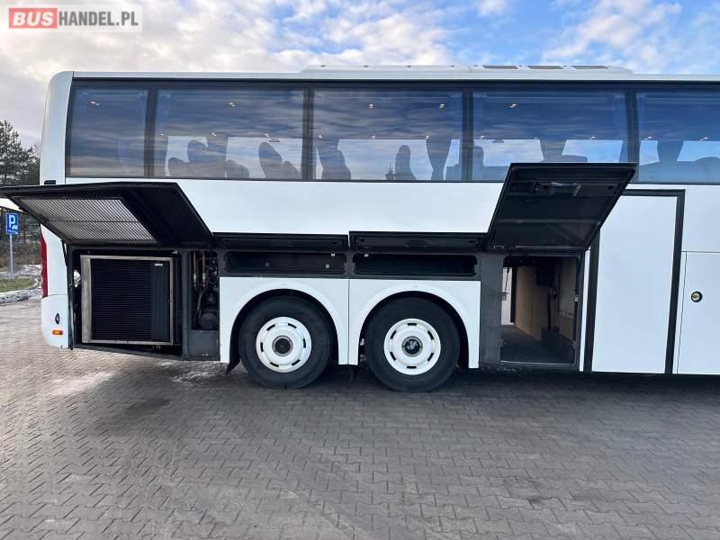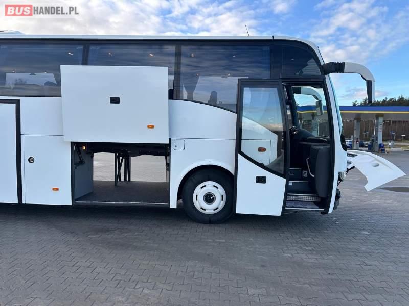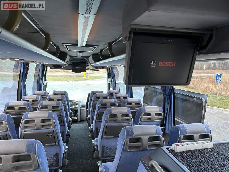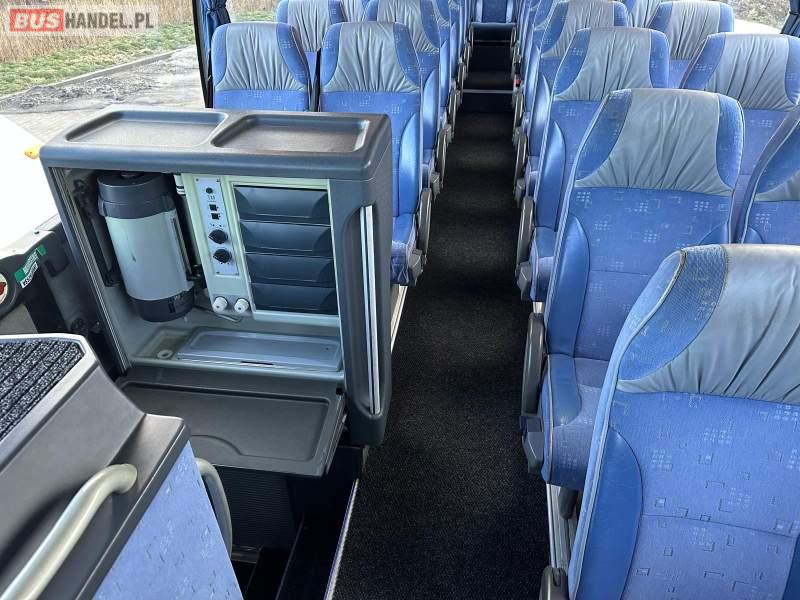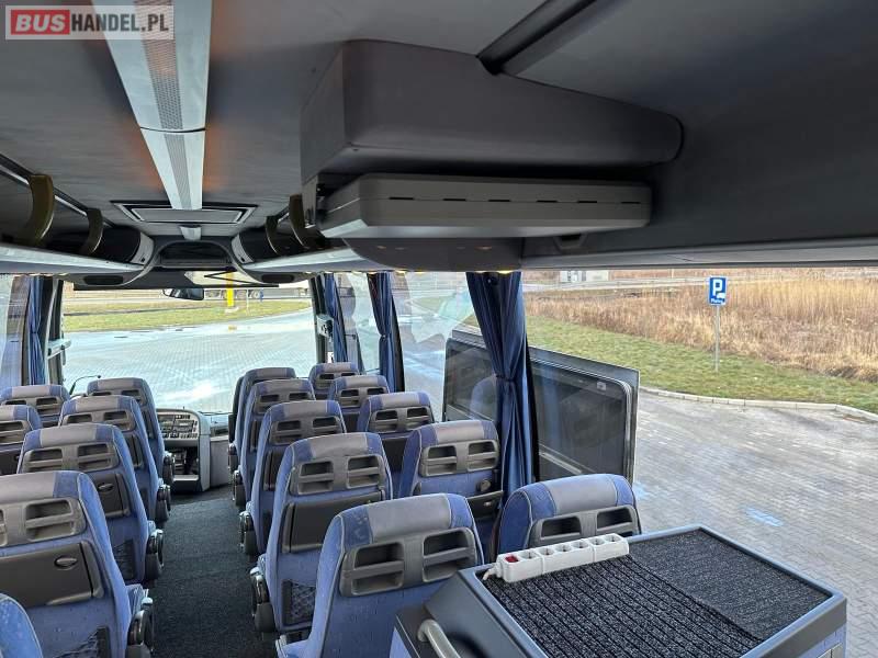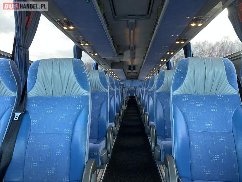 : video, WC, lodówka, caffebar, kabina sypialna, fotele odchylane, oświetlenie indywidualne, nawiewy dyszowe, siateczki, ABS, ASR, tempomat, retarder, telefon, nawigacja, CD, podnóżki, stoliczki, mikrofon, klimatyzacja, radio, wyświetlacz matrix, sejf, regulacja wysokości nadwozia, centralny zamek, podwójne szyby boczne, wspomaganie kierownicy, elektryczne lusterka, fotele odchylane i rozsuwane, DVD, ogrzewanie stacjonarne, hak holowniczy, ESP