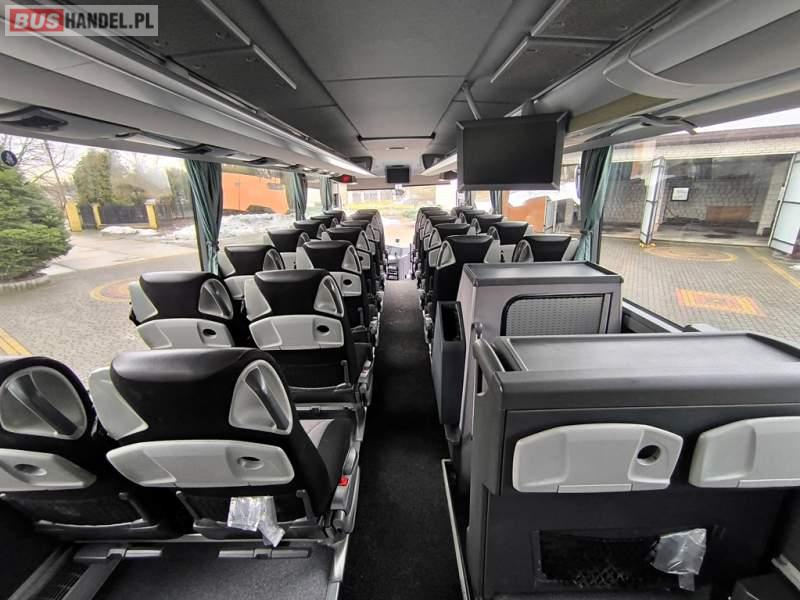 : video, WC, lodówka, caffebar, fotele odchylane, oświetlenie indywidualne, nawiewy dyszowe, siateczki, ABS, ASR, tempomat, retarder, CD, podnóżki, stoliczki, mikrofon, klimatyzacja, radio, sejf, regulacja wysokości nadwozia, centralny zamek, podwójne szyby boczne, wspomaganie kierownicy, elektryczne lusterka, fotele odchylane i rozsuwane, DVD, ogrzewanie stacjonarne, hak holowniczy, ESP
