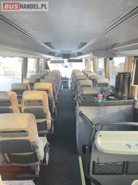 : video, WC, lodówka, caffebar, kabina sypialna, oświetlenie indywidualne, nawiewy dyszowe, siateczki, ABS, ASR, tempomat, retarder, nawigacja, CD, podnóżki, stoliczki, mikrofon, klimatyzacja, radio, rampa dla inwalidów, sejf, regulacja wysokości nadwozia, podwójne szyby boczne, wspomaganie kierownicy, elektryczne lusterka, fotele odchylane i rozsuwane, DVD, ogrzewanie stacjonarne, ESP