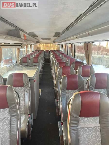 : video, WC, lodówka, caffebar, kabina sypialna, oświetlenie indywidualne, nawiewy dyszowe, siateczki, ABS, ASR, tempomat, retarder, telefon, nawigacja, CD, podnóżki, stoliczki, mikrofon, klimatyzacja, radio, kuchenka mikrofalowa, sejf, regulacja wysokości nadwozia, podwójne szyby boczne, wspomaganie kierownicy, elektryczne lusterka, fotele odchylane i rozsuwane, DVD, ogrzewanie stacjonarne, hak holowniczy, ESP