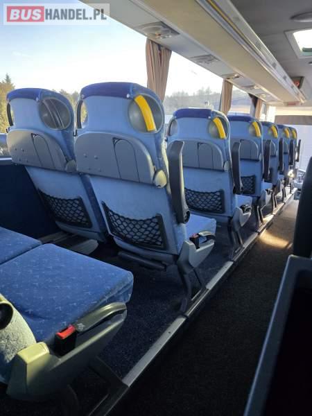 : lodówka, caffebar, oświetlenie indywidualne, nawiewy dyszowe, siateczki, ABS, ASR, tempomat, retarder, podnóżki, stoliczki, mikrofon, klimatyzacja, radio, sejf, centralny zamek, podwójne szyby boczne, wspomaganie kierownicy, elektryczne lusterka, fotele odchylane i rozsuwane, ogrzewanie stacjonarne, ESP