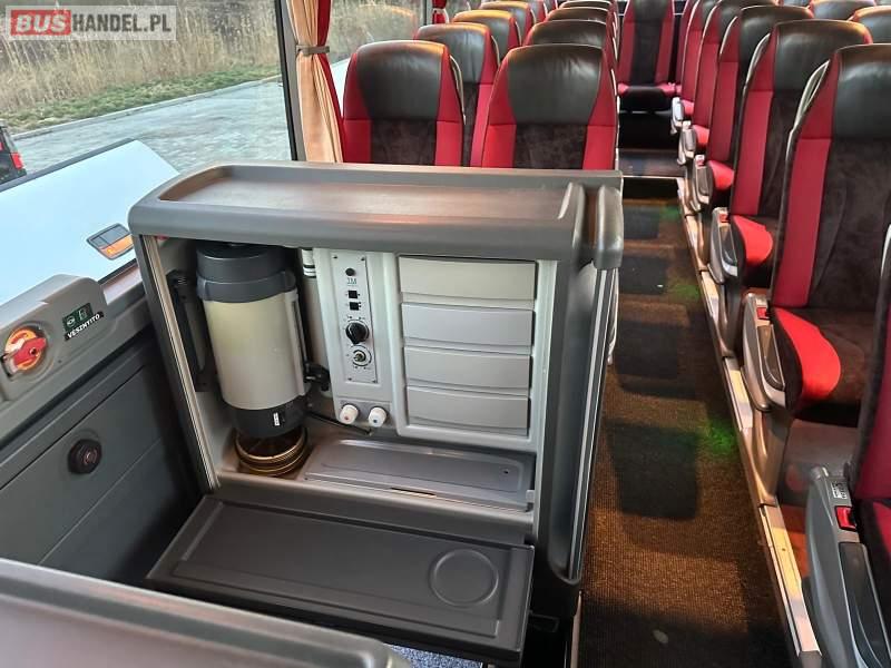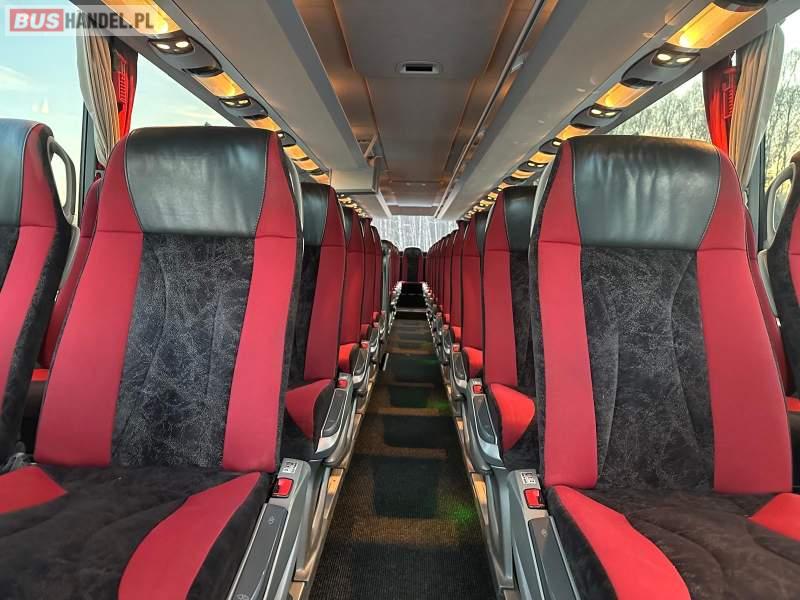 : video, WC, lodówka, caffebar, kabina sypialna, fotele odchylane, oświetlenie indywidualne, nawiewy dyszowe, siateczki, ABS, ASR, tempomat, retarder, telefon, nawigacja, CD, podnóżki, stoliczki, mikrofon, klimatyzacja, radio, wyświetlacz matrix, sejf, regulacja wysokości nadwozia, centralny zamek, podwójne szyby boczne, wspomaganie kierownicy, elektryczne lusterka, fotele odchylane i rozsuwane, DVD, ogrzewanie stacjonarne, hak holowniczy, ESP