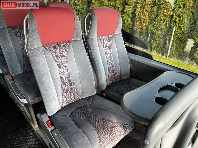 : video, WC, lodówka, caffebar, oświetlenie indywidualne, nawiewy dyszowe, siateczki, ABS, ASR, tempomat, retarder, CD, podnóżki, stoliczki, mikrofon, klimatyzacja, radio, sejf, regulacja wysokości nadwozia, centralny zamek, podwójne szyby boczne, wspomaganie kierownicy, elektryczne lusterka, fotele odchylane i rozsuwane, DVD, ogrzewanie stacjonarne, ESP