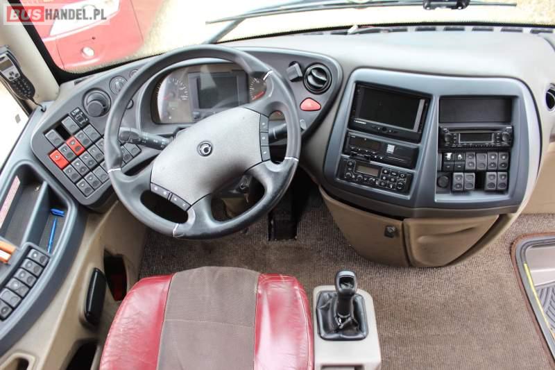 : WC, lodówka, caffebar, kabina sypialna, oświetlenie indywidualne, ABS, ASR, tempomat, retarder, CD, podnóżki, mikrofon, klimatyzacja, radio, regulacja wysokości nadwozia, centralny zamek, podwójne szyby boczne, wspomaganie kierownicy, elektryczne lusterka, fotele odchylane i rozsuwane, DVD, ogrzewanie stacjonarne, ESP