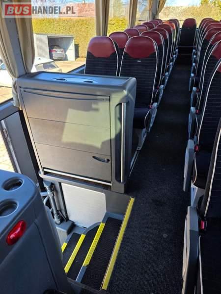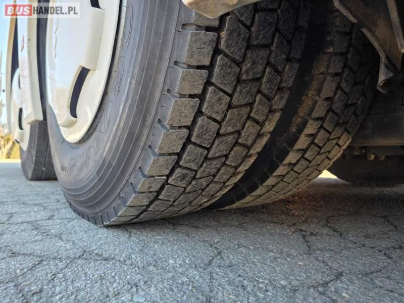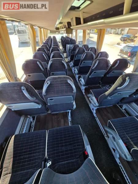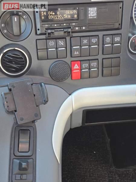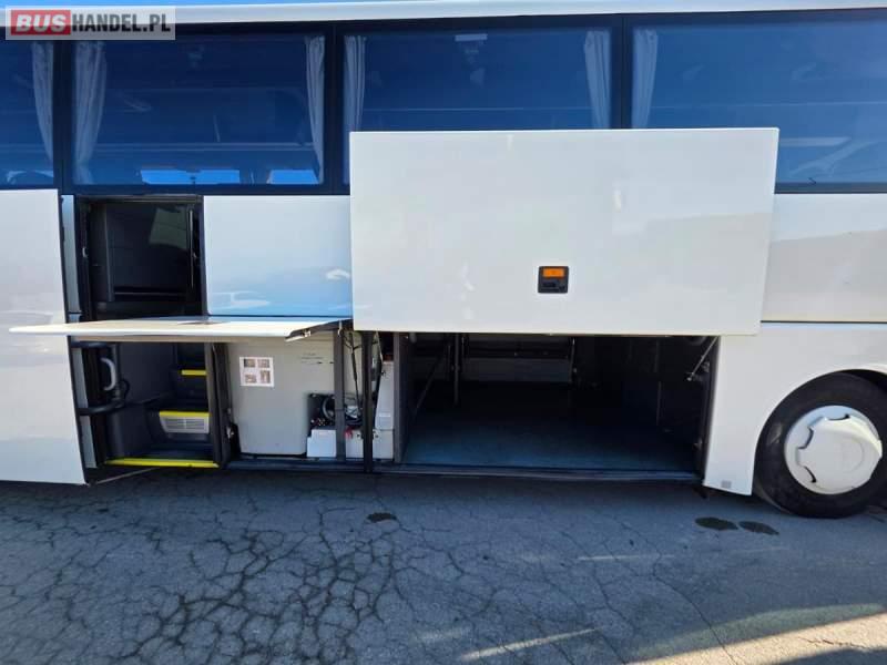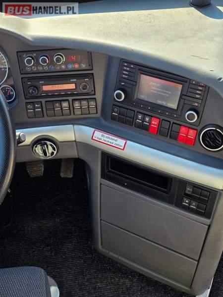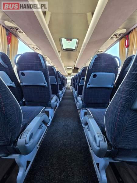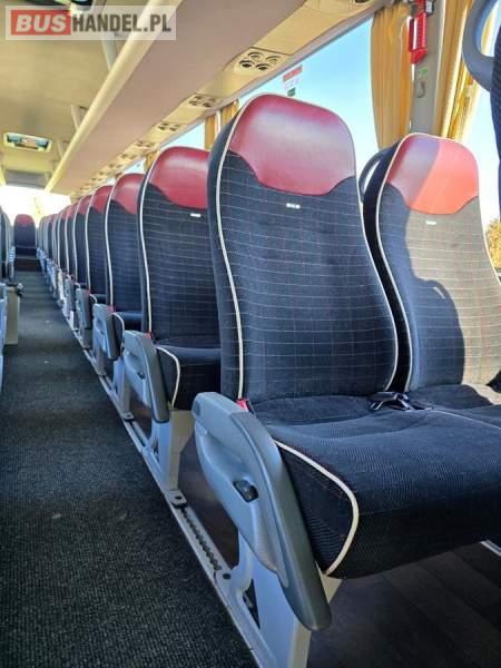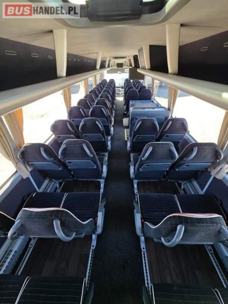 : WC, lodówka, kabina sypialna, fotele odchylane, oświetlenie indywidualne, nawiewy dyszowe, siateczki, ABS, ASR, tempomat, retarder, CD, podnóżki, stoliczki, mikrofon, klimatyzacja, radio, regulacja wysokości nadwozia, centralny zamek, podwójne szyby boczne, wspomaganie kierownicy, elektryczne lusterka, DVD, ogrzewanie stacjonarne, ESP