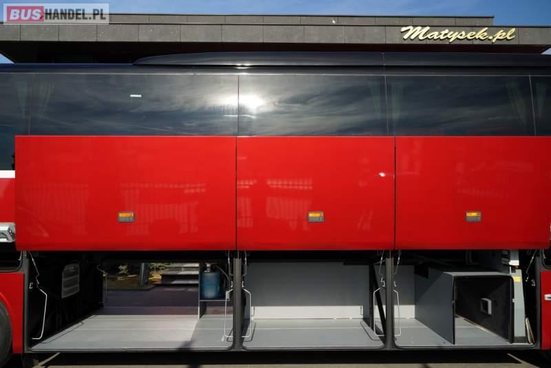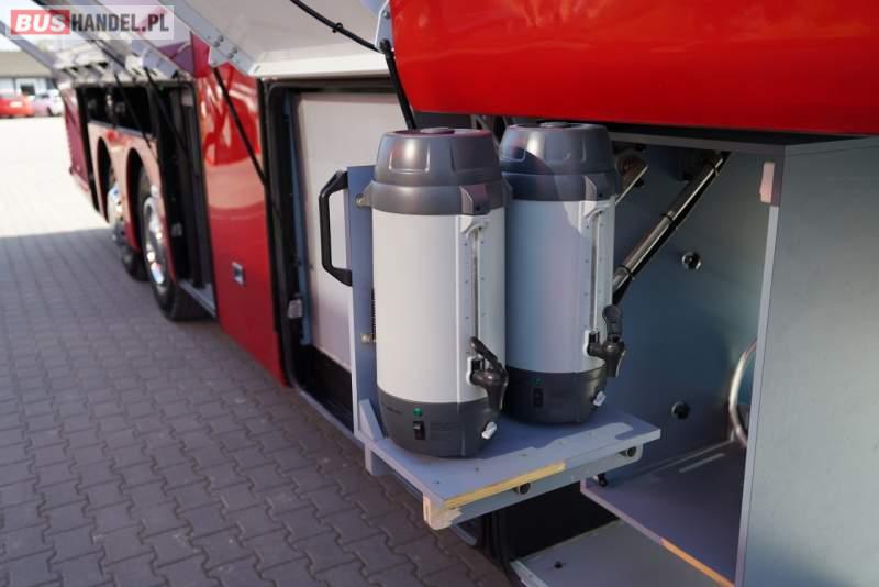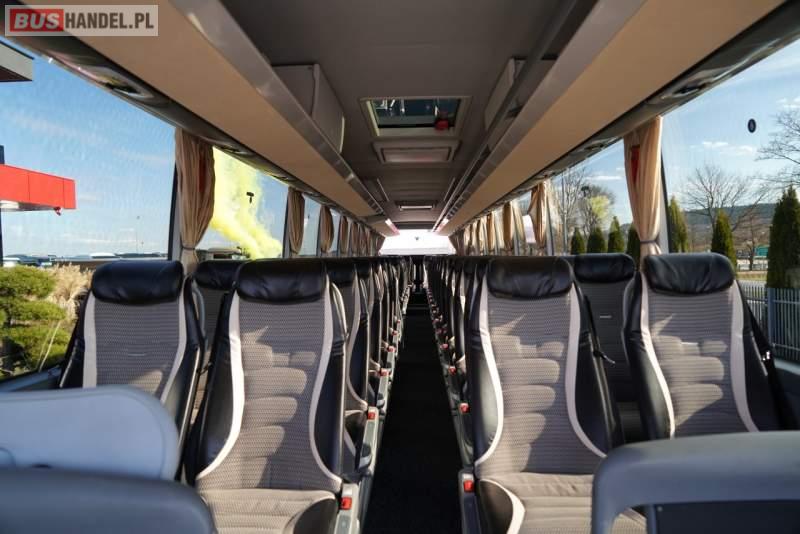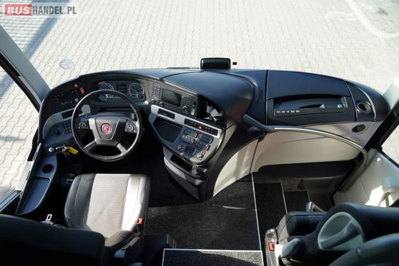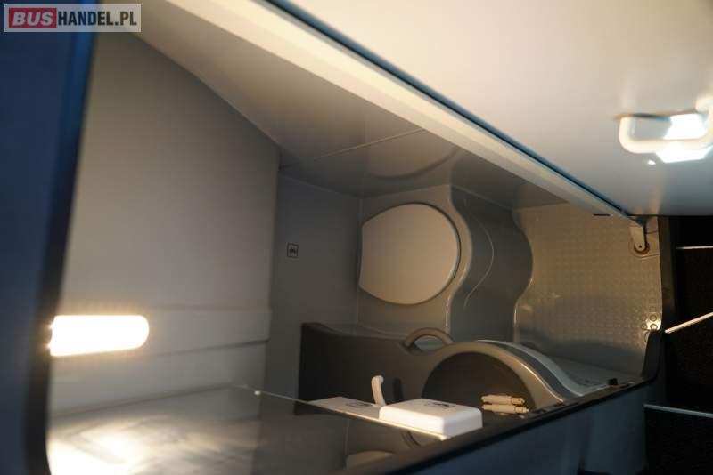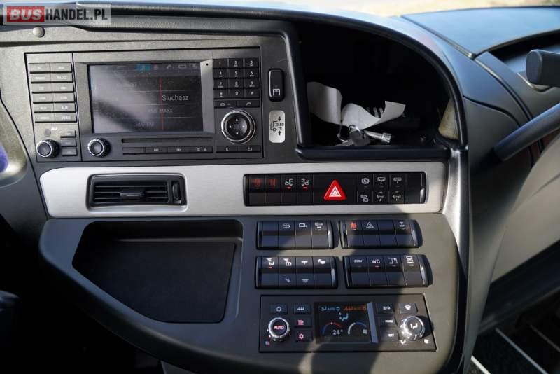 : WC, lodówka, caffebar, ABS, tempomat, retarder, podnóżki, mikrofon, klimatyzacja, radio, fotele odchylane i rozsuwane
