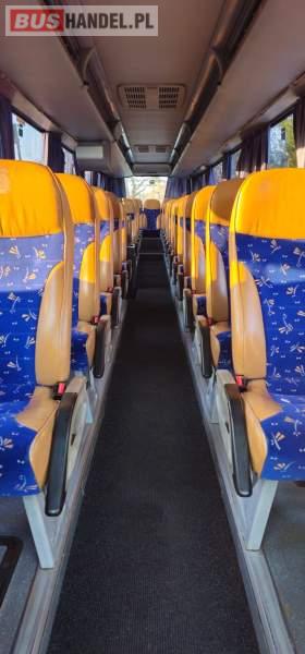 : video, WC, kabina sypialna, oświetlenie indywidualne, ABS, ASR, tempomat, retarder, CD, podnóżki, mikrofon, klimatyzacja, radio, centralny zamek, podwójne szyby boczne, wspomaganie kierownicy, elektryczne lusterka, DVD, ogrzewanie stacjonarne, hak holowniczy