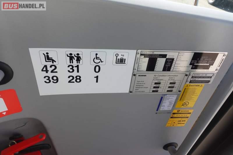 : ABS, ASR, tempomat, retarder, CD, mikrofon, klimatyzacja, radio, wyświetlacz matrix, rampa dla inwalidów, regulacja wysokości nadwozia, podwójne szyby boczne, wspomaganie kierownicy, elektryczne lusterka, ogrzewanie stacjonarne, hak holowniczy, ESP