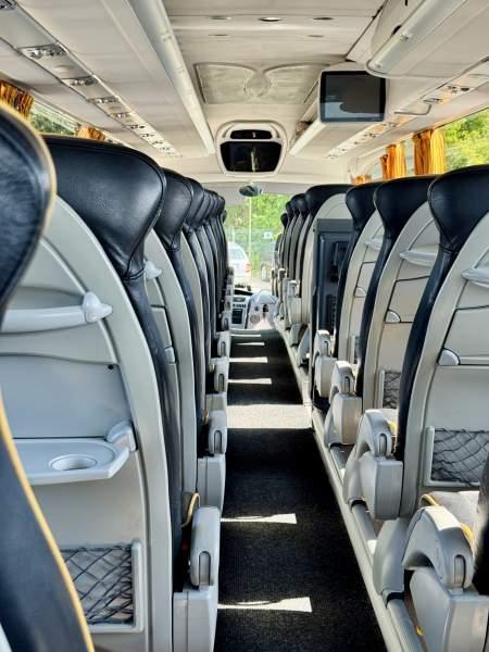 : video, WC, lodówka, caffebar, kabina sypialna, fotele odchylane, oświetlenie indywidualne, nawiewy dyszowe, siateczki, ABS, ASR, tempomat, retarder, CD, podnóżki, stoliczki, mikrofon, klimatyzacja, radio, sejf, regulacja wysokości nadwozia, centralny zamek, podwójne szyby boczne, wspomaganie kierownicy, elektryczne lusterka, aluminiowe felgi, fotele odchylane i rozsuwane, DVD, ogrzewanie stacjonarne, ESP