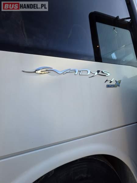 : fotele odchylane, oświetlenie indywidualne, nawiewy dyszowe, siateczki, ABS, ASR, tempomat, retarder, stoliczki, mikrofon, klimatyzacja, regulacja wysokości nadwozia, centralny zamek, podwójne szyby boczne, wspomaganie kierownicy, elektryczne lusterka, ogrzewanie stacjonarne