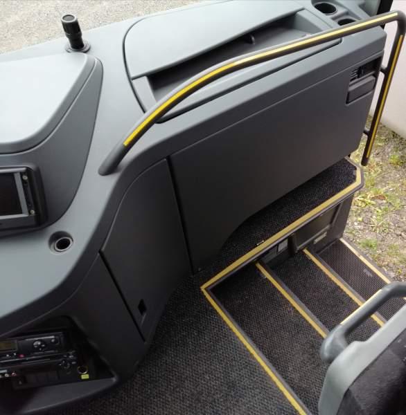 : video, caffebar, fotele odchylane, oświetlenie indywidualne, nawiewy dyszowe, siateczki, ABS, ASR, tempomat, retarder, CD, mikrofon, klimatyzacja, radio, regulacja wysokości nadwozia, podwójne szyby boczne, wspomaganie kierownicy, elektryczne lusterka, aluminiowe felgi, DVD, ogrzewanie stacjonarne, hak holowniczy, ESP