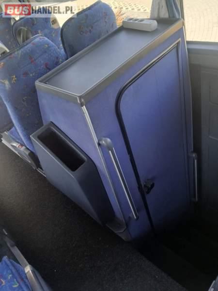 : WC, lodówka, caffebar, kabina sypialna, oświetlenie indywidualne, nawiewy dyszowe, siateczki, ABS, ASR, tempomat, retarder, CD, podnóżki, stoliczki, mikrofon, klimatyzacja, radio, regulacja wysokości nadwozia, podwójne szyby boczne, wspomaganie kierownicy, elektryczne lusterka, aluminiowe felgi, fotele odchylane i rozsuwane, DVD, ogrzewanie stacjonarne, ESP