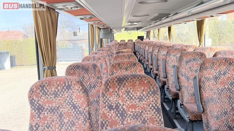 : klimatyzacja, lodówka, oświetlenie indywidualne, nawiewy dyszowe, fotele odchylane, podnóżki, stoliczki, siateczki, ABS, ASR, tempomat, retarder, mikrofon, radio, wyświetlacz matrix, sejf, regulacja wysokości nadwozia, centralny zamek, podwójne szyby boczne, wspomaganie kierownicy, elektryczne lusterka, ogrzewanie stacjonarne, DVD