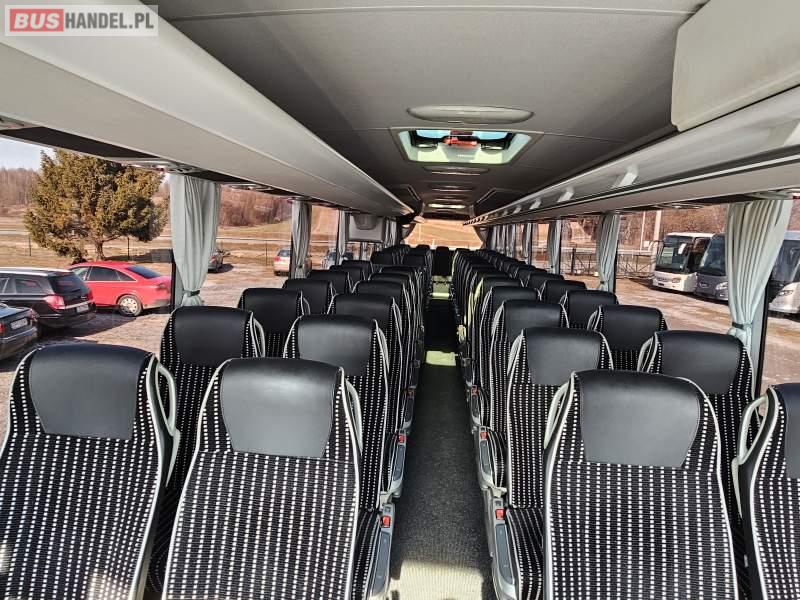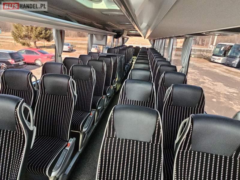 : klimatyzacja, video, WC, lodówka, caffebar, kabina sypialna, oświetlenie indywidualne, nawiewy dyszowe, podnóżki, stoliczki, siateczki, ABS, ASR, tempomat, retarder, CD, mikrofon, radio, fotele odchylane i rozsuwane, sejf, regulacja wysokości nadwozia, centralny zamek, podwójne szyby boczne, wspomaganie kierownicy, aluminiowe felgi, elektryczne lusterka, ogrzewanie stacjonarne, DVD, hak holowniczy, ESP