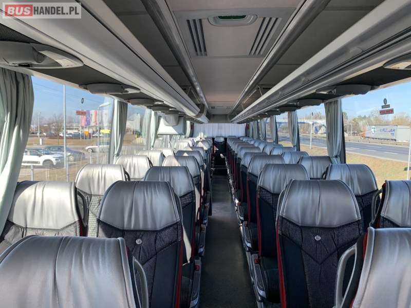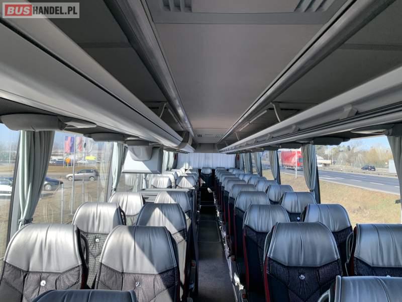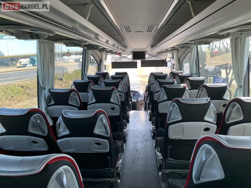 : video, WC, lodówka, caffebar, kabina sypialna, oświetlenie indywidualne, nawiewy dyszowe, siateczki, ABS, ASR, tempomat, retarder, podnóżki, stoliczki, mikrofon, klimatyzacja, radio, sejf, regulacja wysokości nadwozia, centralny zamek, wspomaganie kierownicy, elektryczne lusterka, fotele odchylane i rozsuwane, DVD, ogrzewanie stacjonarne, ESP
