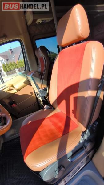 : video, fotele odchylane, oświetlenie indywidualne, nawiewy dyszowe, siateczki, ABS, ASR, tempomat, stoliczki, mikrofon, klimatyzacja, radio, centralny zamek, podwójne szyby boczne, wspomaganie kierownicy, elektryczne lusterka, fotele odchylane i rozsuwane, DVD, ogrzewanie stacjonarne, hak holowniczy, ESP