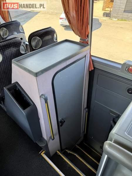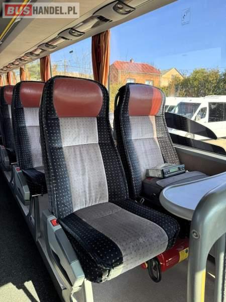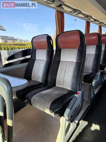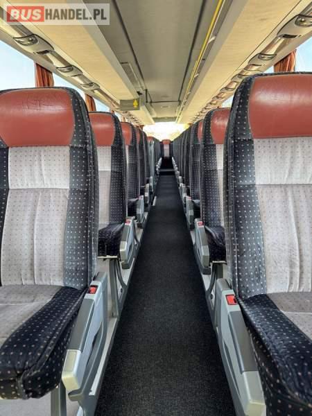 : WC, lodówka, caffebar, fotele odchylane, oświetlenie indywidualne, nawiewy dyszowe, siateczki, ABS, ASR, tempomat, retarder, CD, stoliczki, mikrofon, klimatyzacja, radio, sejf, regulacja wysokości nadwozia, centralny zamek, podwójne szyby boczne, wspomaganie kierownicy, elektryczne lusterka, DVD, ogrzewanie stacjonarne, ESP