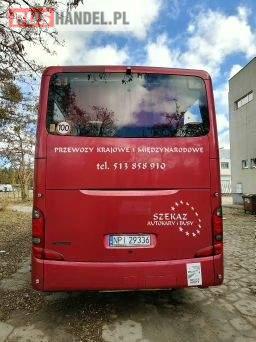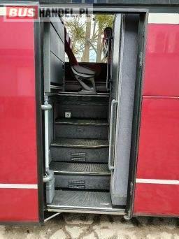 : video, WC, lodówka, caffebar, oświetlenie indywidualne, nawiewy dyszowe, siateczki, ABS, ASR, tempomat, retarder, CD, podnóżki, stoliczki, mikrofon, klimatyzacja, radio, regulacja wysokości nadwozia, centralny zamek, podwójne szyby boczne, wspomaganie kierownicy, elektryczne lusterka, fotele odchylane i rozsuwane, DVD, ogrzewanie stacjonarne, hak holowniczy
