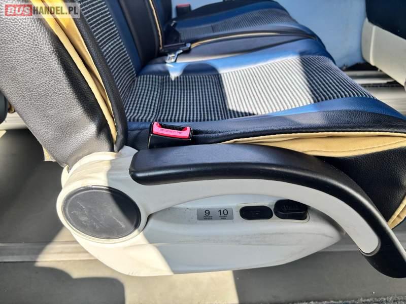 : lodówka, fotele odchylane, oświetlenie indywidualne, nawiewy dyszowe, ABS, ASR, retarder, stoliczki, mikrofon, klimatyzacja, radio, regulacja wysokości nadwozia, centralny zamek, podwójne szyby boczne, wspomaganie kierownicy, elektryczne lusterka, ogrzewanie stacjonarne
