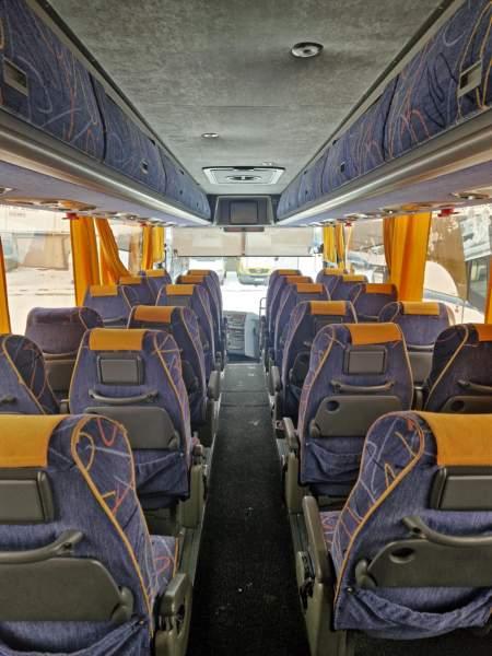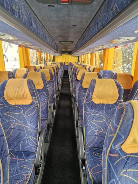 : WC, lodówka, kabina sypialna, oświetlenie indywidualne, nawiewy dyszowe, ABS, ASR, tempomat, retarder, mikrofon, klimatyzacja, podwójne szyby boczne, wspomaganie kierownicy, elektryczne lusterka, fotele odchylane i rozsuwane, ogrzewanie stacjonarne