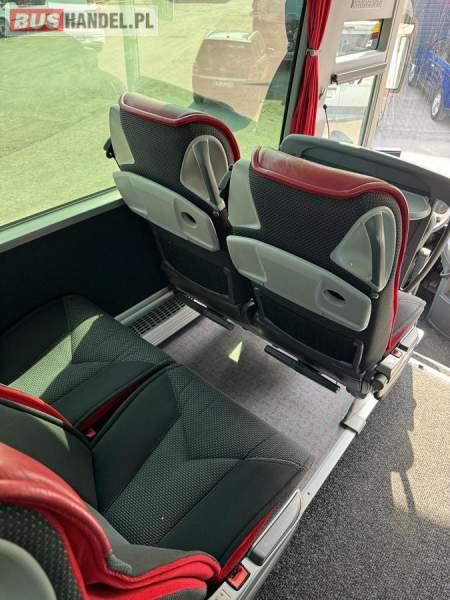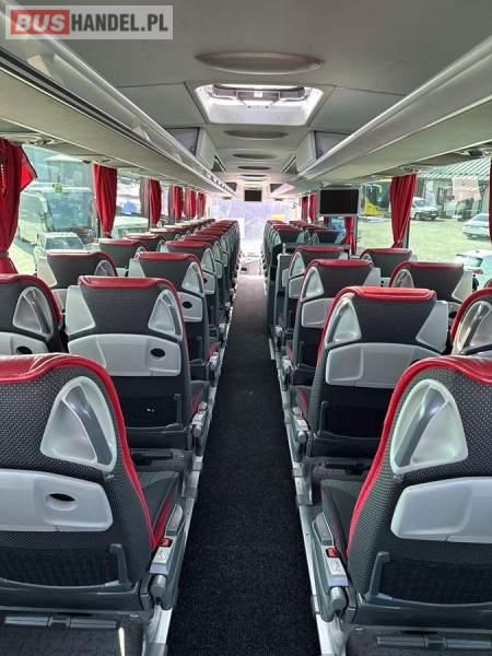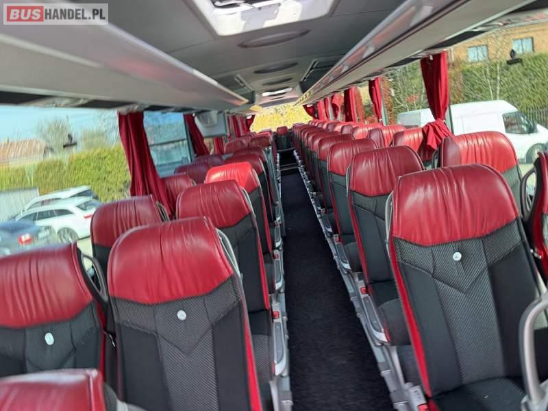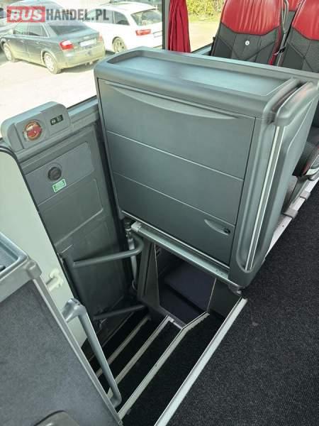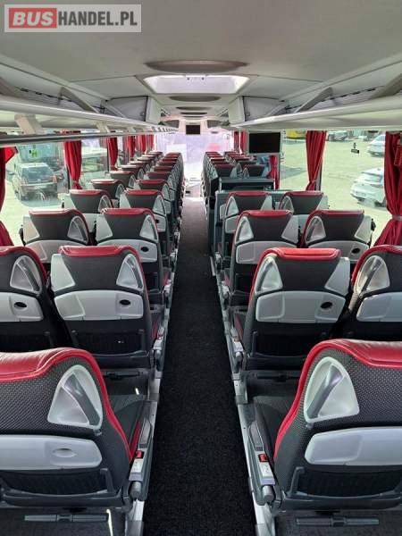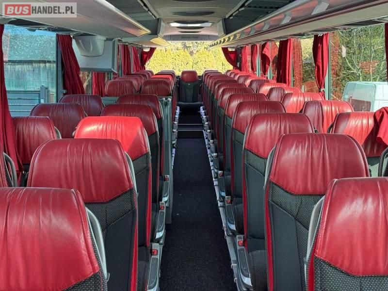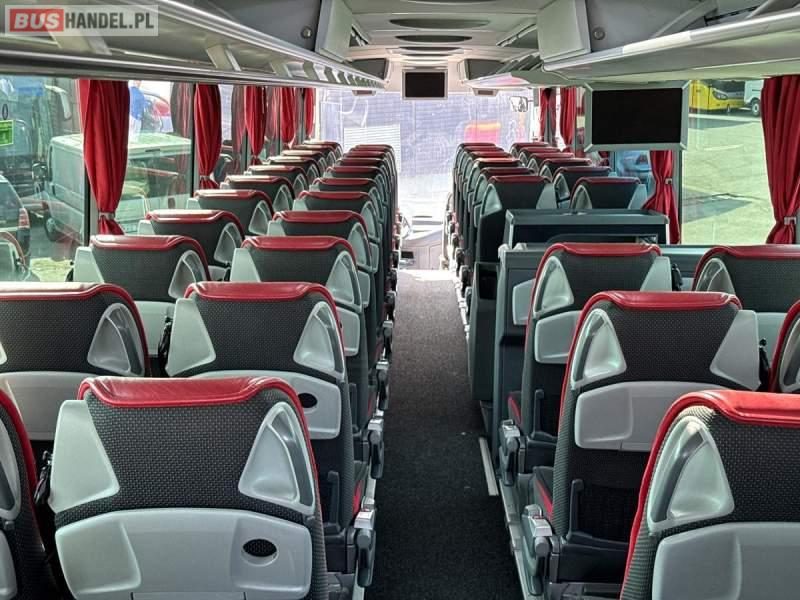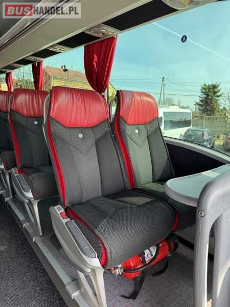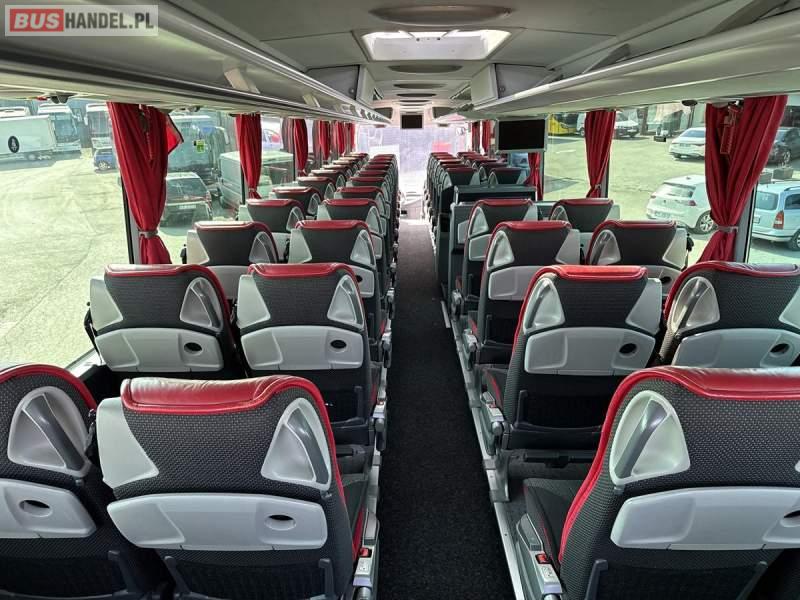 : WC, lodówka, kabina sypialna, fotele odchylane, oświetlenie indywidualne, nawiewy dyszowe, siateczki, ABS, ASR, tempomat, retarder, CD, podnóżki, stoliczki, mikrofon, klimatyzacja, radio, sejf, regulacja wysokości nadwozia, centralny zamek, podwójne szyby boczne, wspomaganie kierownicy, elektryczne lusterka, DVD, ogrzewanie stacjonarne, ESP