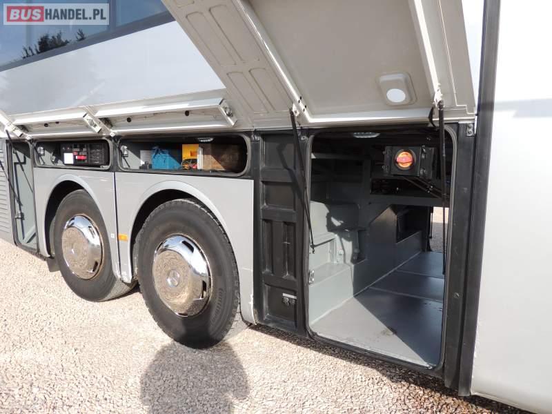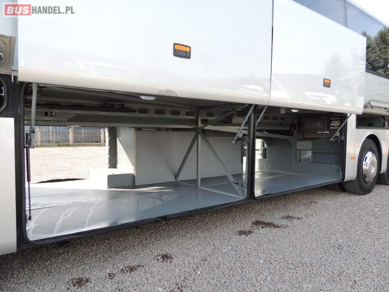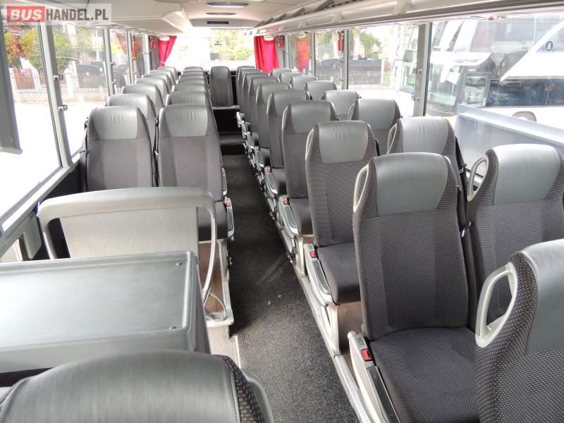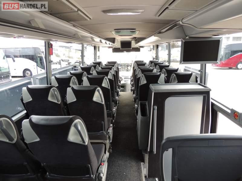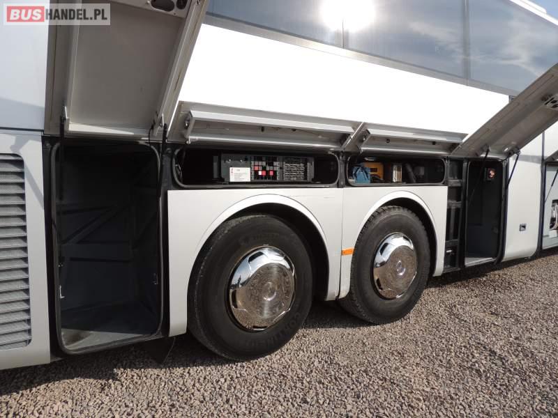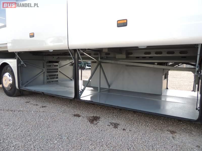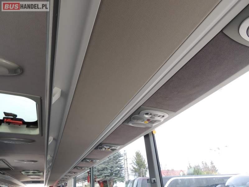 : video, WC, lodówka, oświetlenie indywidualne, nawiewy dyszowe, ABS, ASR, tempomat, retarder, CD, klimatyzacja, radio, regulacja wysokości nadwozia, centralny zamek, podwójne szyby boczne, wspomaganie kierownicy, elektryczne lusterka, fotele odchylane i rozsuwane, DVD, ogrzewanie stacjonarne, ESP