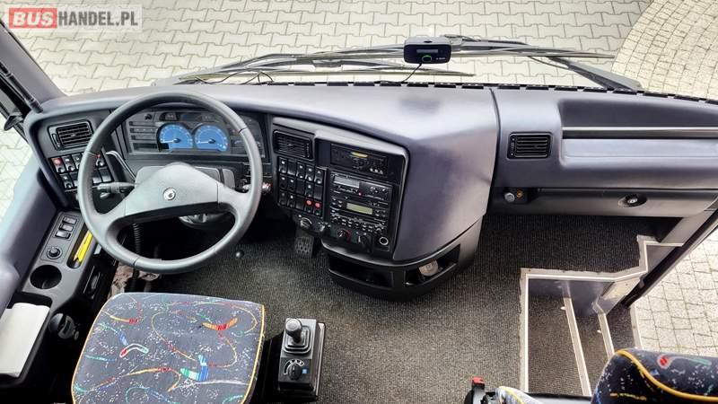 : video, WC, lodówka, kabina sypialna, fotele odchylane, oświetlenie indywidualne, nawiewy dyszowe, ABS, ASR, tempomat, retarder, podnóżki, stoliczki, mikrofon, klimatyzacja, radio, regulacja wysokości nadwozia, centralny zamek, podwójne szyby boczne, wspomaganie kierownicy, elektryczne lusterka, hak holowniczy