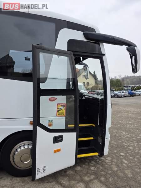 : lodówka, fotele odchylane, oświetlenie indywidualne, nawiewy dyszowe, siateczki, ABS, ASR, tempomat, retarder, podnóżki, stoliczki, mikrofon, klimatyzacja, radio, regulacja wysokości nadwozia, centralny zamek, podwójne szyby boczne, wspomaganie kierownicy, elektryczne lusterka, fotele odchylane i rozsuwane, ogrzewanie stacjonarne