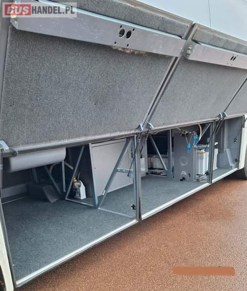 : WC, lodówka, kabina sypialna, oświetlenie indywidualne, nawiewy dyszowe, siateczki, ABS, ASR, tempomat, retarder, nawigacja, CD, podnóżki, stoliczki, mikrofon, klimatyzacja, radio, sejf, regulacja wysokości nadwozia, centralny zamek, podwójne szyby boczne, wspomaganie kierownicy, elektryczne lusterka, fotele odchylane i rozsuwane, DVD, ogrzewanie stacjonarne, hak holowniczy