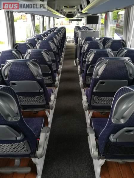 : video, WC, lodówka, caffebar, kabina sypialna, fotele odchylane, oświetlenie indywidualne, nawiewy dyszowe, siateczki, ABS, ASR, tempomat, retarder, nawigacja, CD, podnóżki, stoliczki, mikrofon, klimatyzacja, regulacja wysokości nadwozia, centralny zamek, podwójne szyby boczne, wspomaganie kierownicy, elektryczne lusterka, DVD, ogrzewanie stacjonarne, ESP