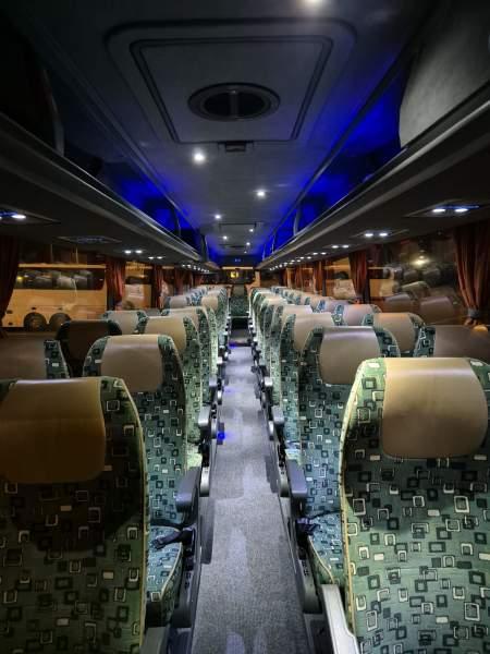 : klimatyzacja, WC, lodówka, kabina sypialna, oświetlenie indywidualne, nawiewy dyszowe, fotele odchylane, podnóżki, stoliczki, siateczki, ABS, ASR, tempomat, retarder, telefon, CD, mikrofon, radio, regulacja wysokości nadwozia, podwójne szyby boczne, wspomaganie kierownicy, elektryczne lusterka, ogrzewanie stacjonarne, DVD, hak holowniczy, ESP