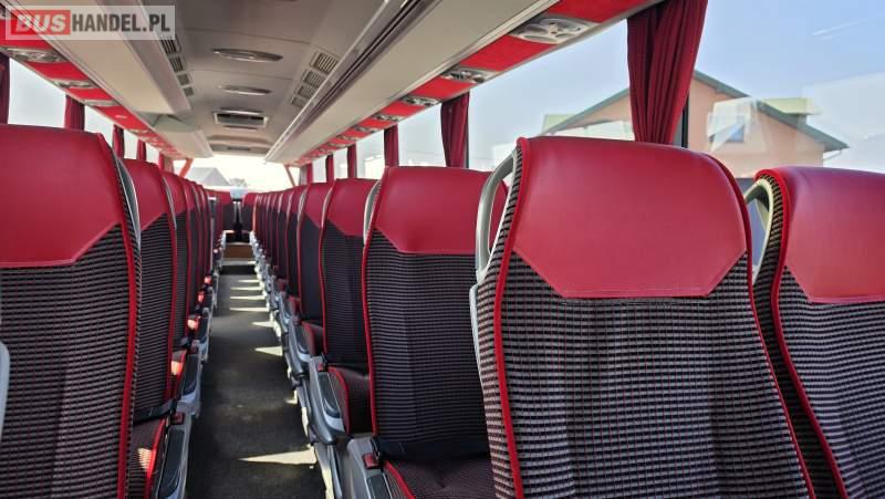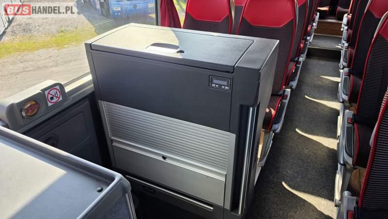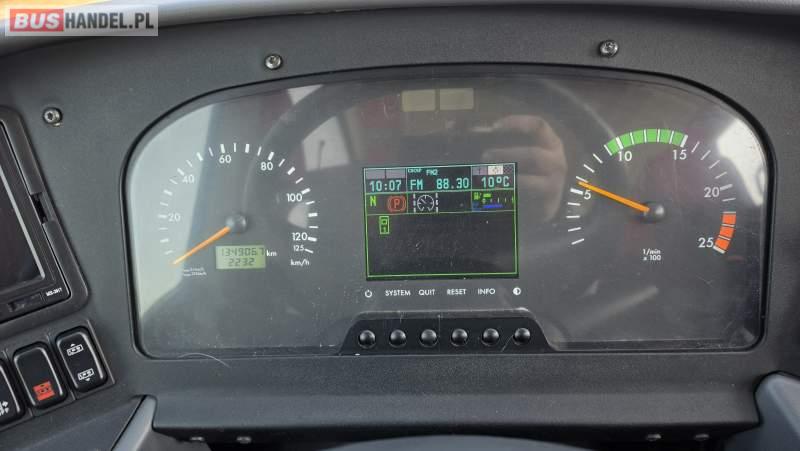 : video, WC, lodówka, caffebar, kabina sypialna, oświetlenie indywidualne, nawiewy dyszowe, siateczki, ABS, ASR, tempomat, retarder, CD, podnóżki, stoliczki, mikrofon, klimatyzacja, radio, sejf, regulacja wysokości nadwozia, centralny zamek, podwójne szyby boczne, wspomaganie kierownicy, elektryczne lusterka, aluminiowe felgi, fotele odchylane i rozsuwane, DVD, ogrzewanie stacjonarne, ESP