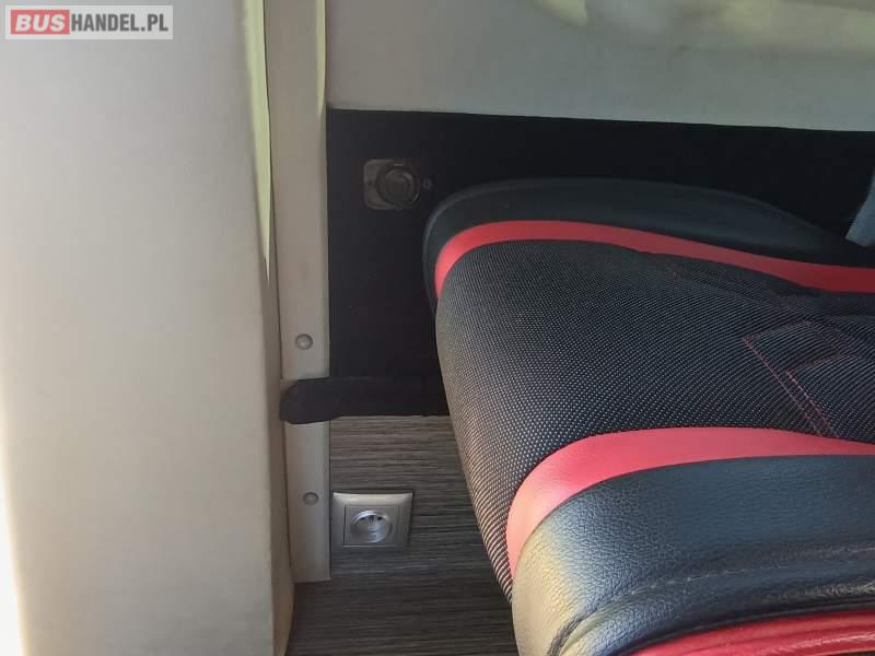 : video, oświetlenie indywidualne, nawiewy dyszowe, ABS, ASR, tempomat, nawigacja, stoliczki, mikrofon, klimatyzacja, radio, centralny zamek, podwójne szyby boczne, wspomaganie kierownicy, fotele odchylane i rozsuwane, DVD, ogrzewanie stacjonarne, hak holowniczy, ESP