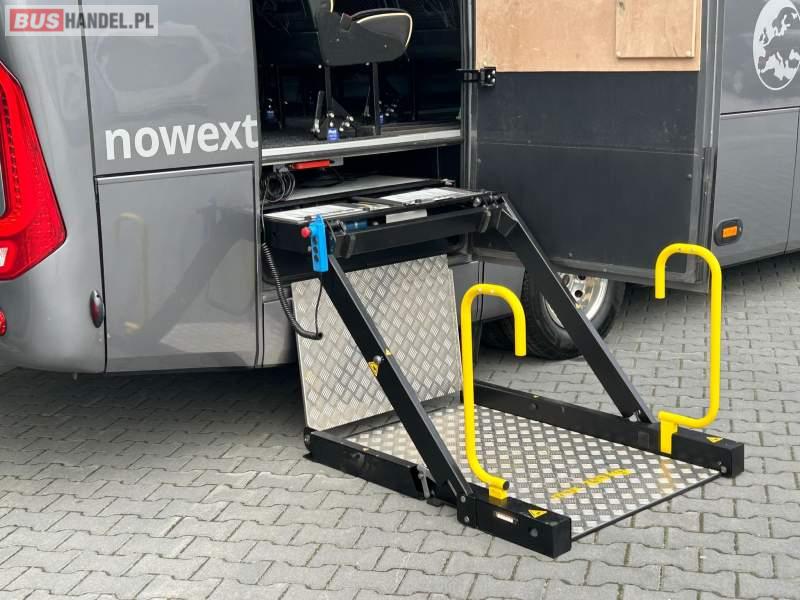 : video, oświetlenie indywidualne, nawiewy dyszowe, siateczki, ABS, ASR, tempomat, retarder, nawigacja, CD, stoliczki, mikrofon, klimatyzacja, radio, rampa dla inwalidów, regulacja wysokości nadwozia, centralny zamek, podwójne szyby boczne, wspomaganie kierownicy, elektryczne lusterka, fotele odchylane i rozsuwane, DVD, ogrzewanie stacjonarne, ESP