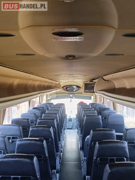 : video, lodówka, fotele odchylane, oświetlenie indywidualne, nawiewy dyszowe, ABS, ASR, tempomat, retarder, CD, mikrofon, klimatyzacja, radio, sejf, regulacja wysokości nadwozia, centralny zamek, podwójne szyby boczne, wspomaganie kierownicy, elektryczne lusterka, DVD, ogrzewanie stacjonarne, ESP