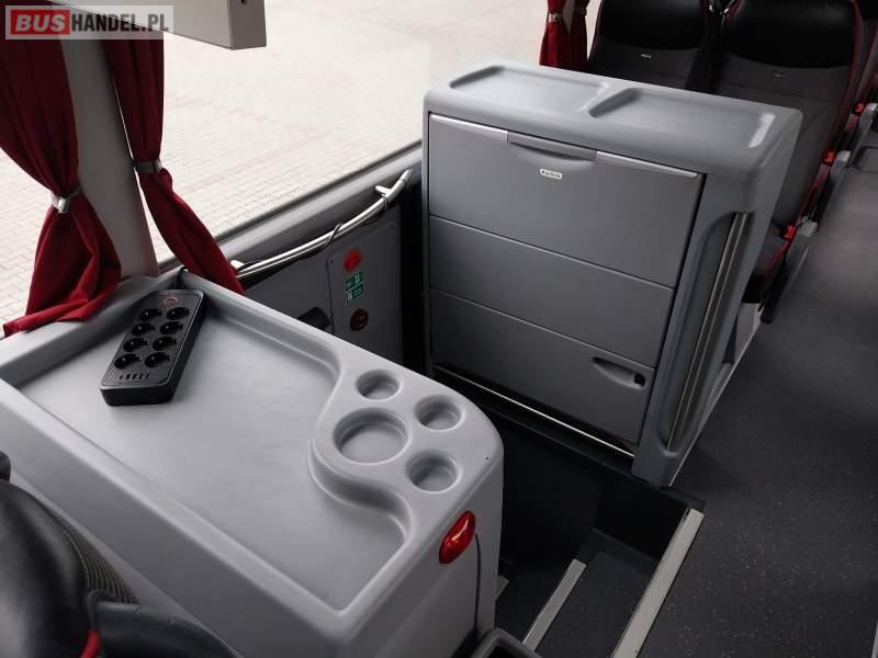 : video, WC, lodówka, kabina sypialna, oświetlenie indywidualne, nawiewy dyszowe, siateczki, ABS, ASR, tempomat, retarder, telefon, CD, podnóżki, stoliczki, mikrofon, klimatyzacja, radio, regulacja wysokości nadwozia, centralny zamek, podwójne szyby boczne, wspomaganie kierownicy, fotele odchylane i rozsuwane, ogrzewanie stacjonarne, ESP