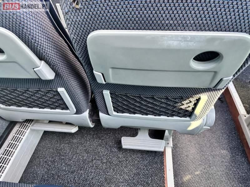 : lodówka, fotele odchylane, oświetlenie indywidualne, siateczki, ABS, ASR, tempomat, retarder, podnóżki, stoliczki, mikrofon, klimatyzacja, radio, regulacja wysokości nadwozia, centralny zamek, podwójne szyby boczne, wspomaganie kierownicy, elektryczne lusterka, DVD, ogrzewanie stacjonarne
