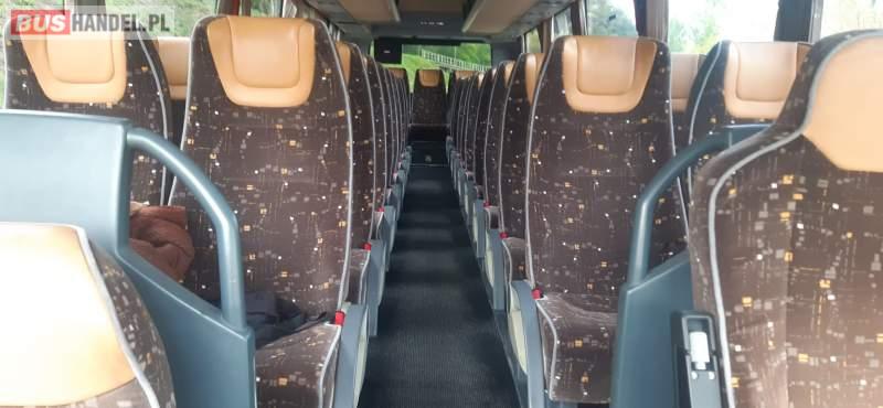: video, lodówka, fotele odchylane, oświetlenie indywidualne, nawiewy dyszowe, siateczki, ABS, ASR, tempomat, retarder, telefon, CD, stoliczki, klimatyzacja, radio, regulacja wysokości nadwozia, centralny zamek, podwójne szyby boczne, wspomaganie kierownicy, elektryczne lusterka, DVD, ogrzewanie stacjonarne