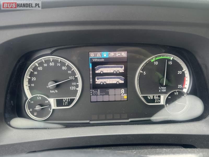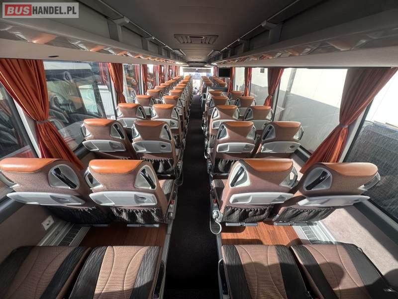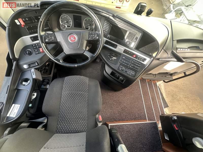 : klimatyzacja, lodówka, oświetlenie indywidualne, ABS, ASR, retarder, telefon, nawigacja, CD, mikrofon, radio, fotele odchylane i rozsuwane, podwójne szyby boczne, wspomaganie kierownicy, aluminiowe felgi, ogrzewanie stacjonarne, DVD, ESP
