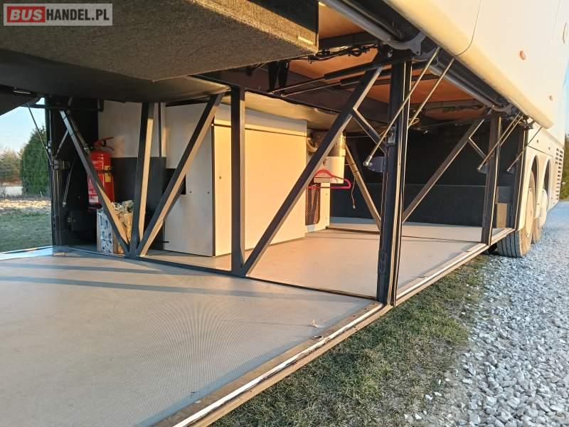 : WC, lodówka, fotele odchylane, oświetlenie indywidualne, nawiewy dyszowe, ABS, ASR, tempomat, CD, mikrofon, klimatyzacja, sejf, regulacja wysokości nadwozia, centralny zamek, podwójne szyby boczne, wspomaganie kierownicy, elektryczne lusterka, fotele odchylane i rozsuwane, DVD, ogrzewanie stacjonarne, ESP