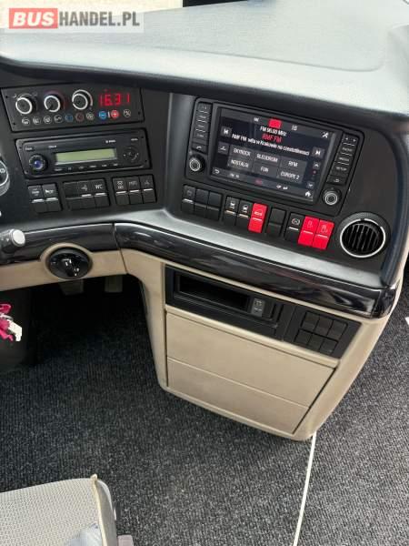 : WC, lodówka, kabina sypialna, fotele odchylane, oświetlenie indywidualne, nawiewy dyszowe, siateczki, ABS, ASR, tempomat, retarder, podnóżki, stoliczki, mikrofon, klimatyzacja, radio, sejf, regulacja wysokości nadwozia, centralny zamek, podwójne szyby boczne, wspomaganie kierownicy, elektryczne lusterka, fotele odchylane i rozsuwane, DVD, ogrzewanie stacjonarne, ESP
