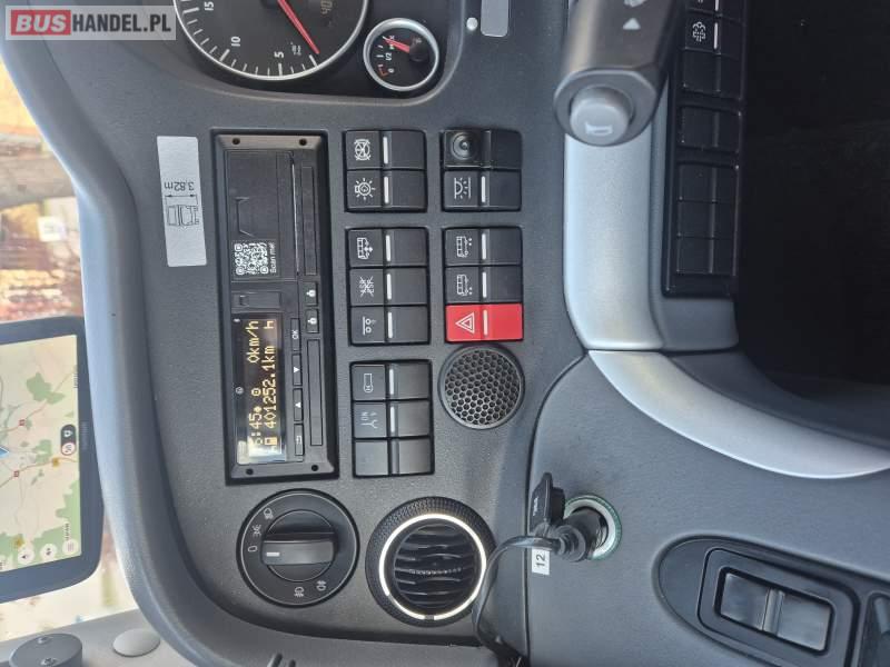 : klimatyzacja, video, WC, lodówka, caffebar, kabina sypialna, oświetlenie indywidualne, nawiewy dyszowe, fotele odchylane, fotele nieodchylane, podnóżki, stoliczki, siateczki, ABS, ASR, tempomat, retarder, telefon, CD, mikrofon, radio, fotele odchylane i rozsuwane, wyświetlacz matrix, sejf, regulacja wysokości nadwozia, centralny zamek, podwójne szyby boczne, wspomaganie kierownicy, elektryczne lusterka, ogrzewanie stacjonarne, DVD, hak holowniczy, ESP