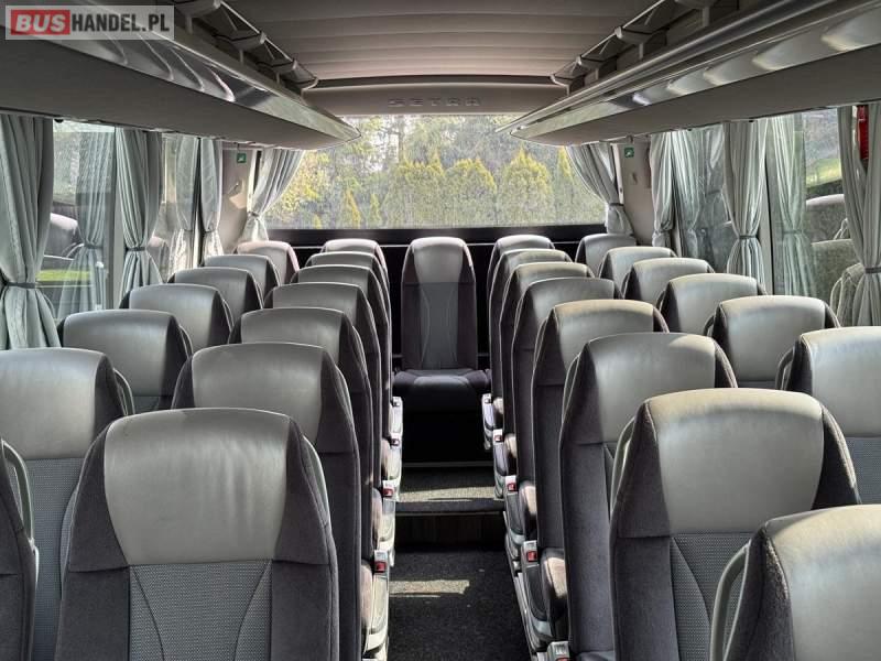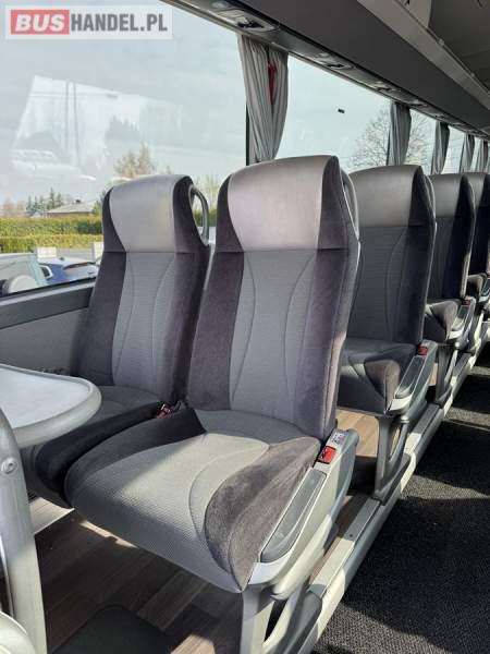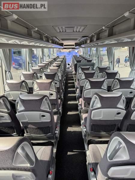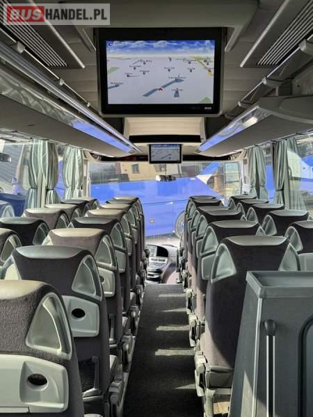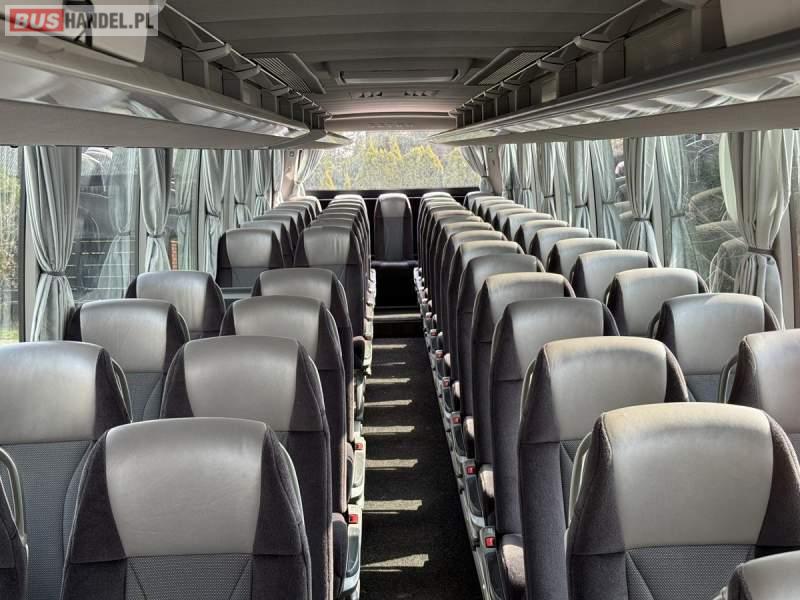 : WC, lodówka, kabina sypialna, fotele odchylane, oświetlenie indywidualne, nawiewy dyszowe, siateczki, tempomat, retarder, podnóżki, stoliczki, mikrofon, klimatyzacja, radio, sejf, regulacja wysokości nadwozia, centralny zamek, podwójne szyby boczne, wspomaganie kierownicy, elektryczne lusterka, fotele odchylane i rozsuwane, DVD, ogrzewanie stacjonarne, ESP