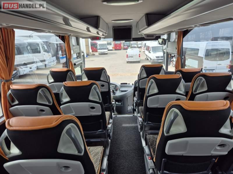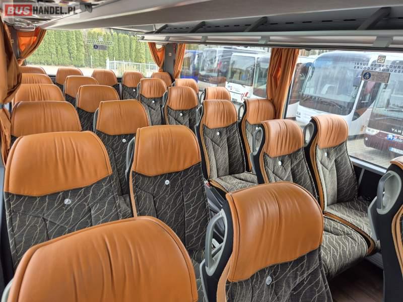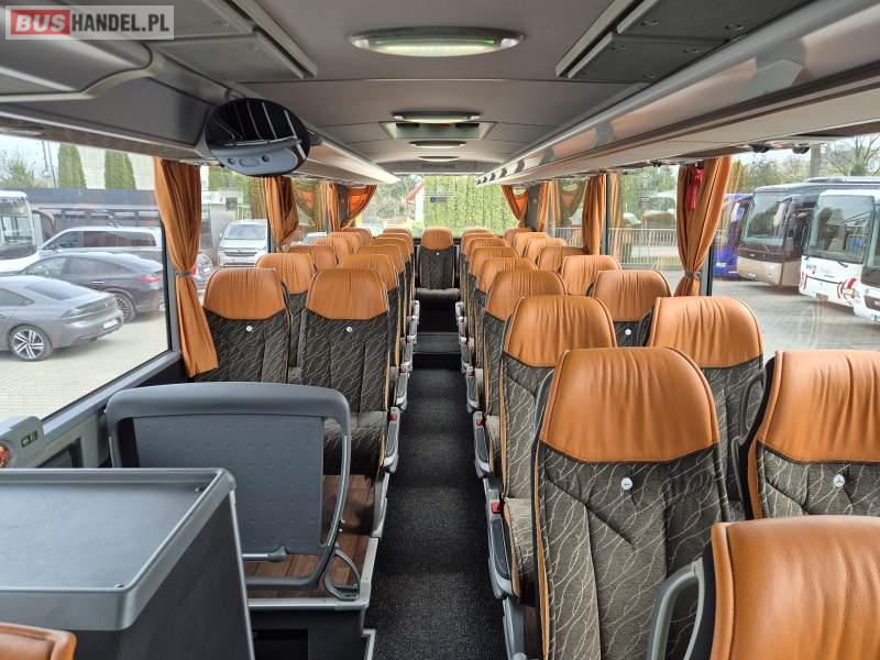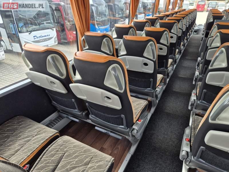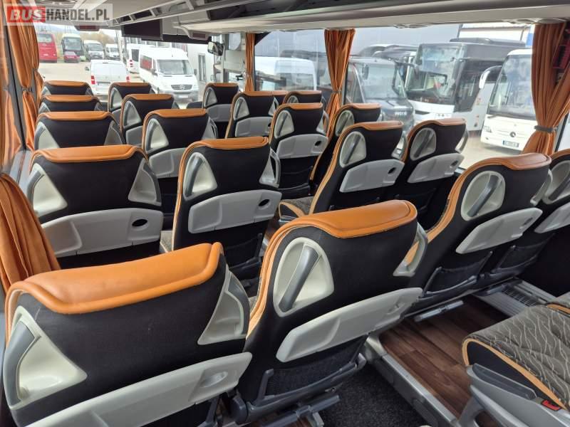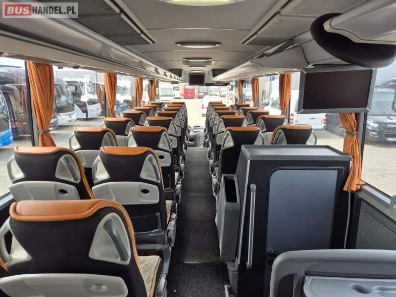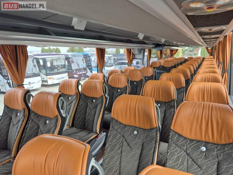 : video, WC, lodówka, kabina sypialna, fotele odchylane, oświetlenie indywidualne, siateczki, ABS, tempomat, retarder, CD, podnóżki, stoliczki, mikrofon, klimatyzacja, radio, regulacja wysokości nadwozia, centralny zamek, podwójne szyby boczne, wspomaganie kierownicy, elektryczne lusterka, DVD, ogrzewanie stacjonarne