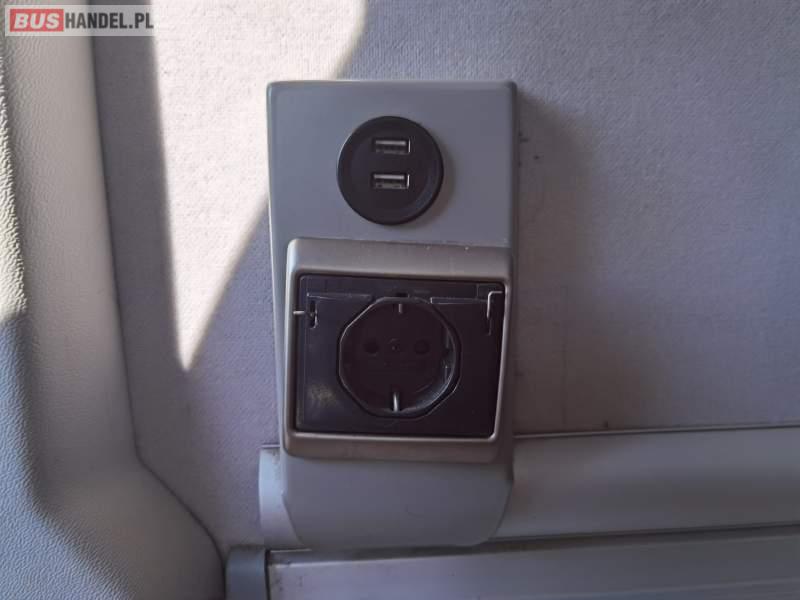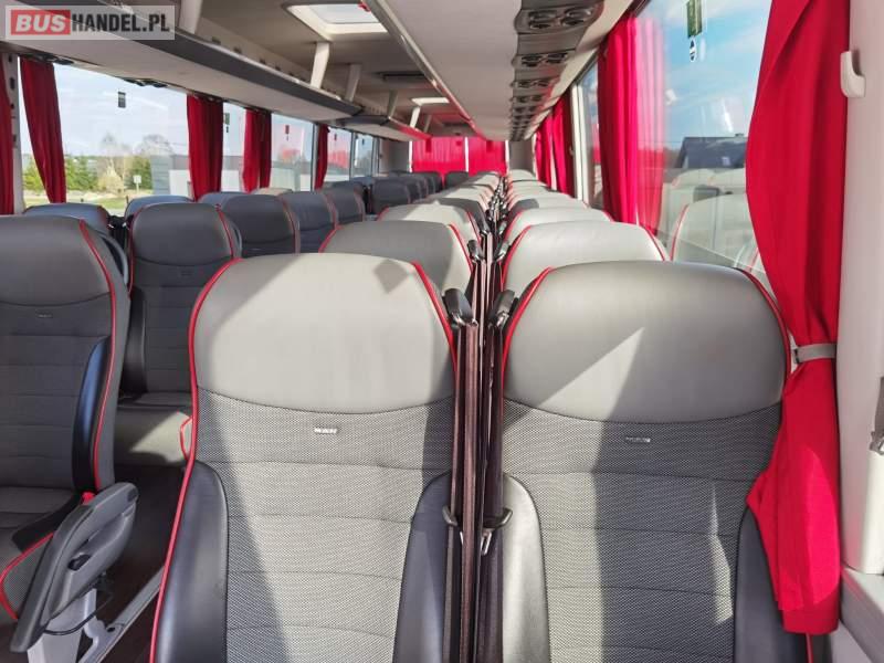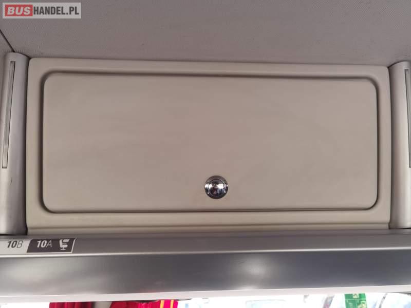 : video, WC, lodówka, fotele odchylane, oświetlenie indywidualne, siateczki, ABS, ASR, tempomat, retarder, nawigacja, CD, stoliczki, mikrofon, klimatyzacja, radio, regulacja wysokości nadwozia, centralny zamek, podwójne szyby boczne, wspomaganie kierownicy, elektryczne lusterka, aluminiowe felgi, DVD, ogrzewanie stacjonarne, ESP