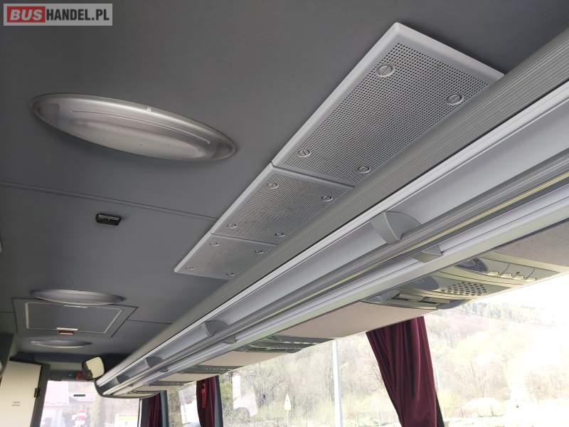 : video, WC, lodówka, caffebar, oświetlenie indywidualne, nawiewy dyszowe, siateczki, ABS, ASR, tempomat, retarder, CD, podnóżki, stoliczki, mikrofon, klimatyzacja, radio, sejf, regulacja wysokości nadwozia, podwójne szyby boczne, wspomaganie kierownicy, elektryczne lusterka, fotele odchylane i rozsuwane, DVD, ogrzewanie stacjonarne, hak holowniczy, ESP