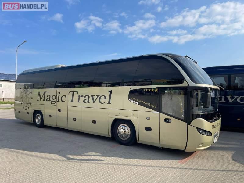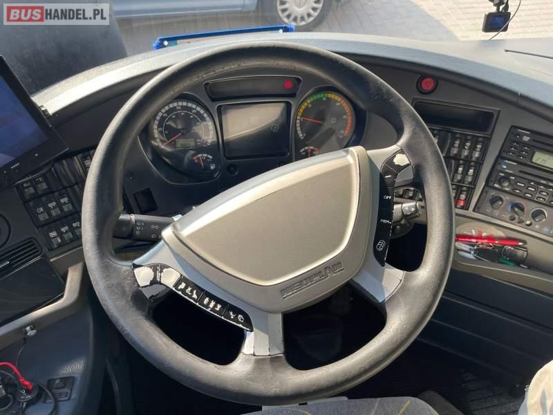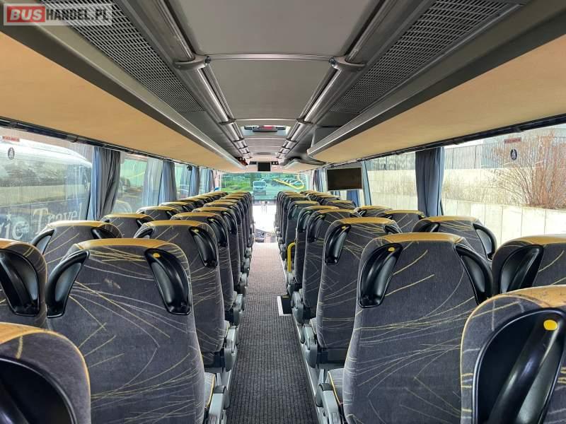 : video, lodówka, kabina sypialna, fotele odchylane, oświetlenie indywidualne, nawiewy dyszowe, siateczki, tempomat, retarder, podnóżki, stoliczki, mikrofon, klimatyzacja, radio, wyświetlacz matrix, sejf, regulacja wysokości nadwozia, podwójne szyby boczne, wspomaganie kierownicy, fotele odchylane i rozsuwane, ogrzewanie stacjonarne