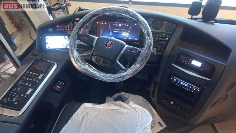 : video, WC, lodówka, kabina sypialna, oświetlenie indywidualne, nawiewy dyszowe, ABS, ASR, tempomat, retarder, nawigacja, CD, podnóżki, mikrofon, klimatyzacja, radio, sejf, regulacja wysokości nadwozia, centralny zamek, podwójne szyby boczne, wspomaganie kierownicy, elektryczne lusterka, aluminiowe felgi, fotele odchylane i rozsuwane, DVD, ogrzewanie stacjonarne, ESP