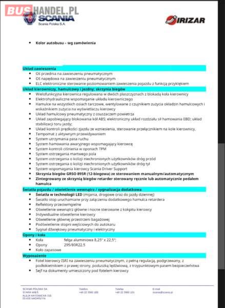 Sprzedam nowy autobus Scania Irizar I6S. autobus 14, 980m. Kolor czarna czekolada . możliwość dodatkowego podwójnego fotela w miejsce WC. autobus przygotowany do szybkiego demontażu części wc. lusterka składane elektrycznie kufry otwierane automatycznie kabina sypialna ogrzewana niezależnym webasto i chłodzona klimatyzacją. instalacja 230V . Autobus gotowy do pracy. Auto jest nie zarejestrowane i gwarancja pełna . Sprzedający: