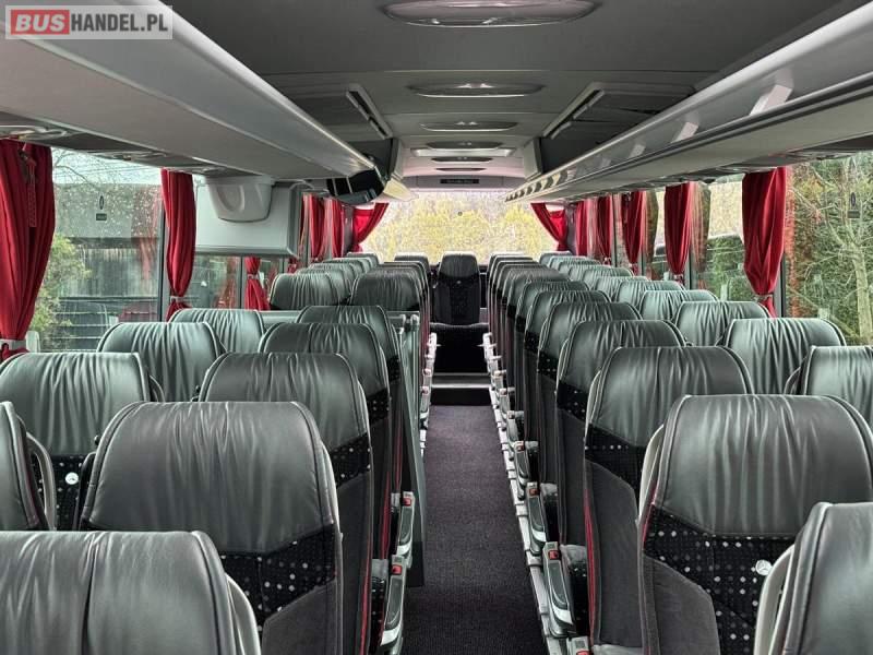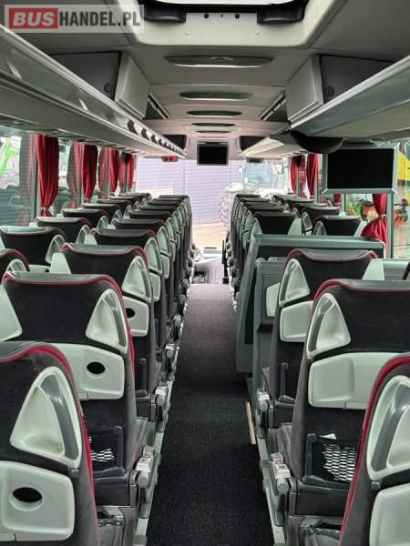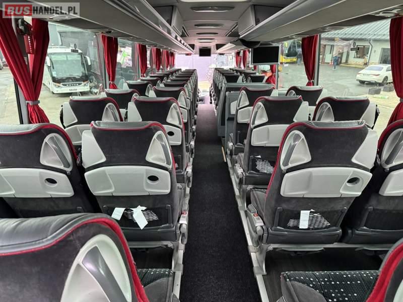 : WC, lodówka, caffebar, kabina sypialna, oświetlenie indywidualne, nawiewy dyszowe, siateczki, ABS, ASR, tempomat, retarder, CD, podnóżki, stoliczki, mikrofon, klimatyzacja, radio, wyświetlacz matrix, regulacja wysokości nadwozia, centralny zamek, podwójne szyby boczne, wspomaganie kierownicy, elektryczne lusterka, fotele odchylane i rozsuwane, DVD, ogrzewanie stacjonarne, hak holowniczy, ESP